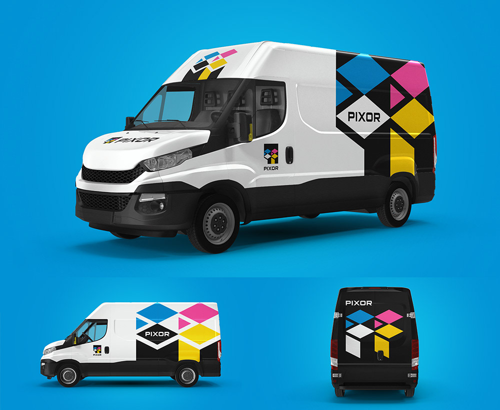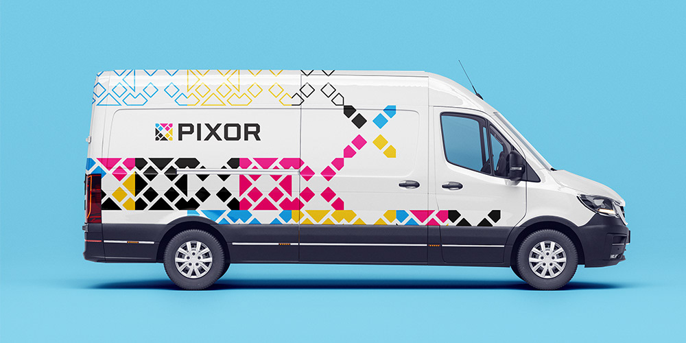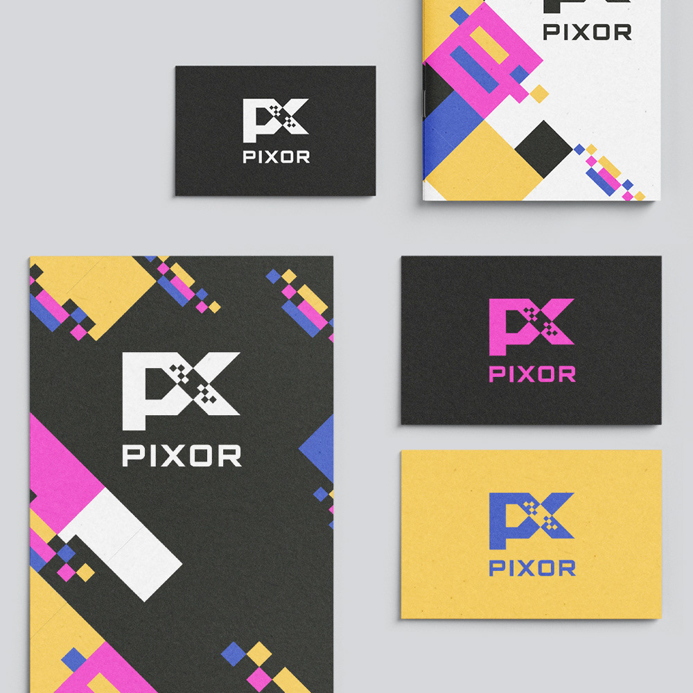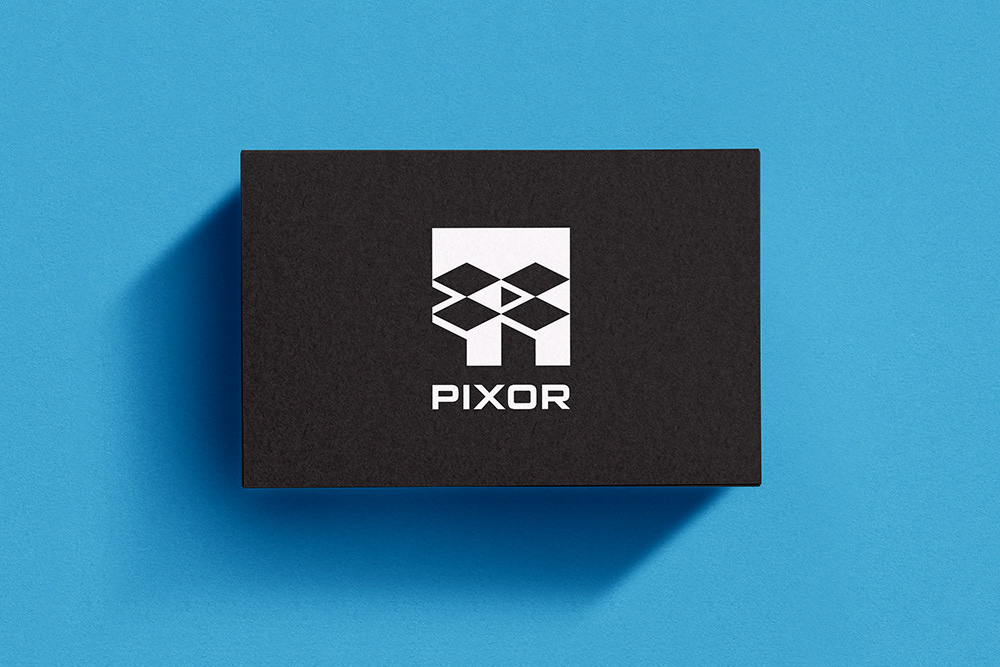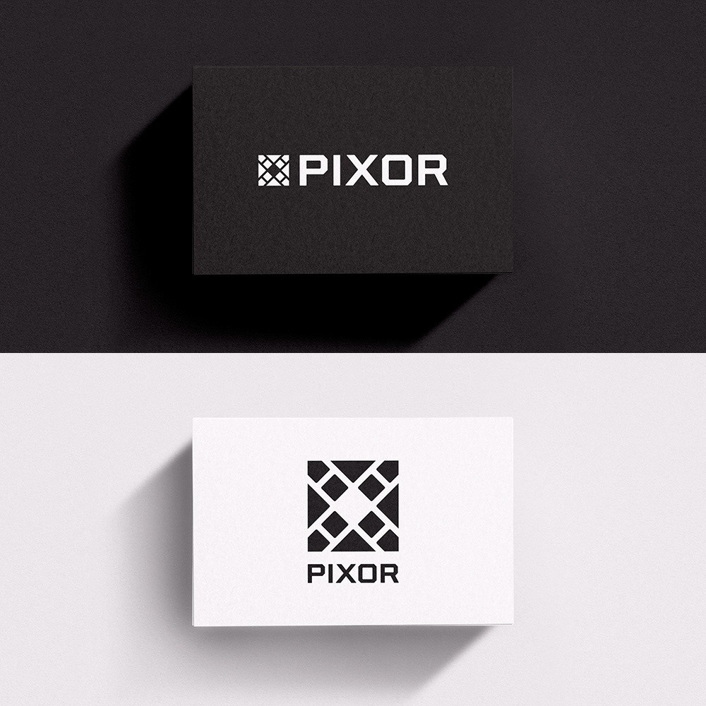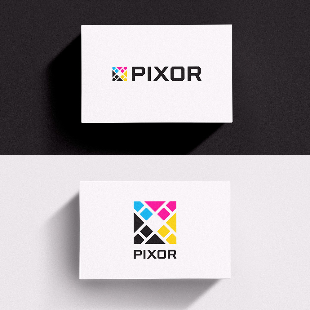 Logo designs for Pixor, a company offering direct printing on walls, floors, and other surfaces.