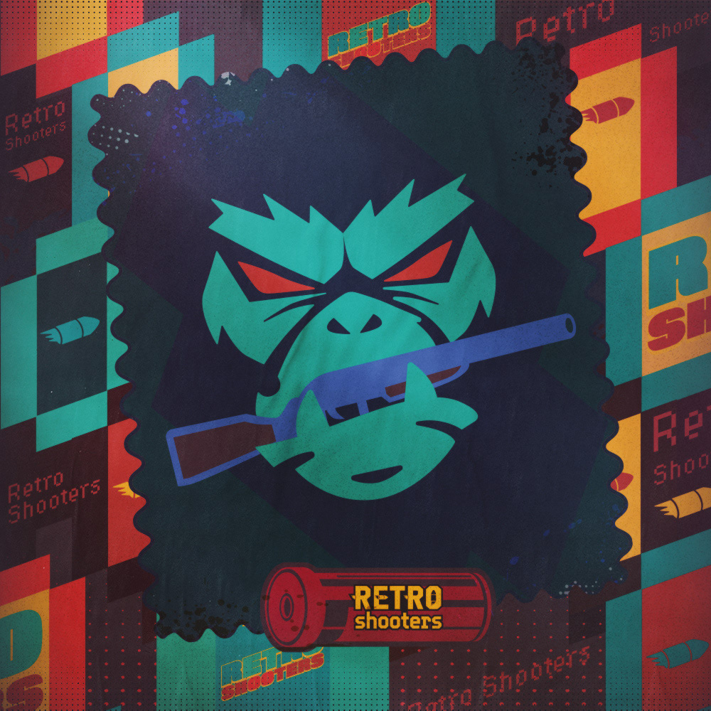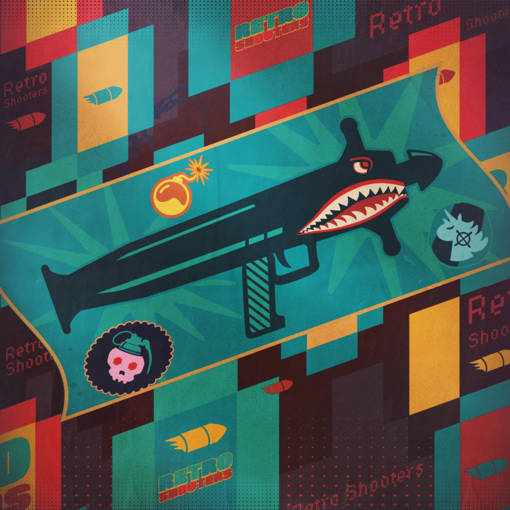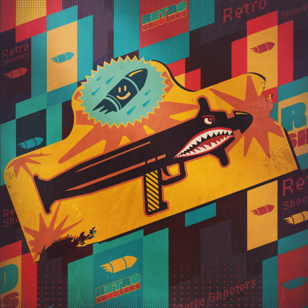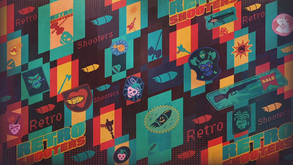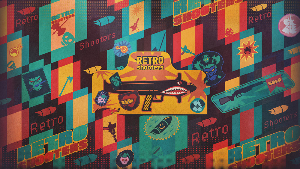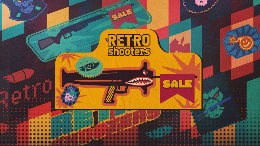 Key visual and illustrations for the GOG sale - classic shooter games.