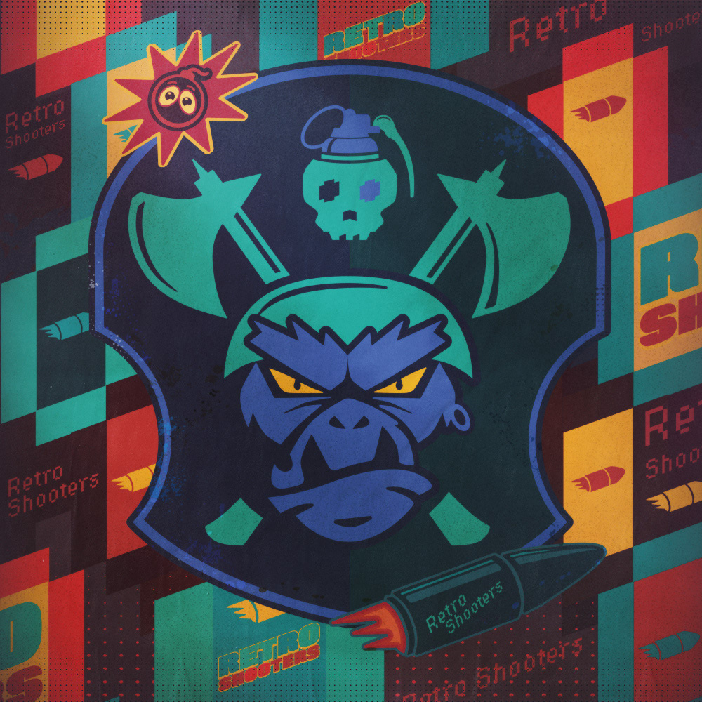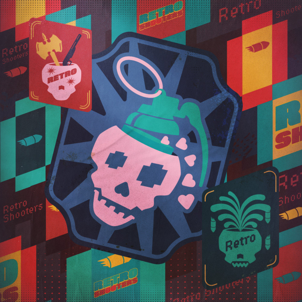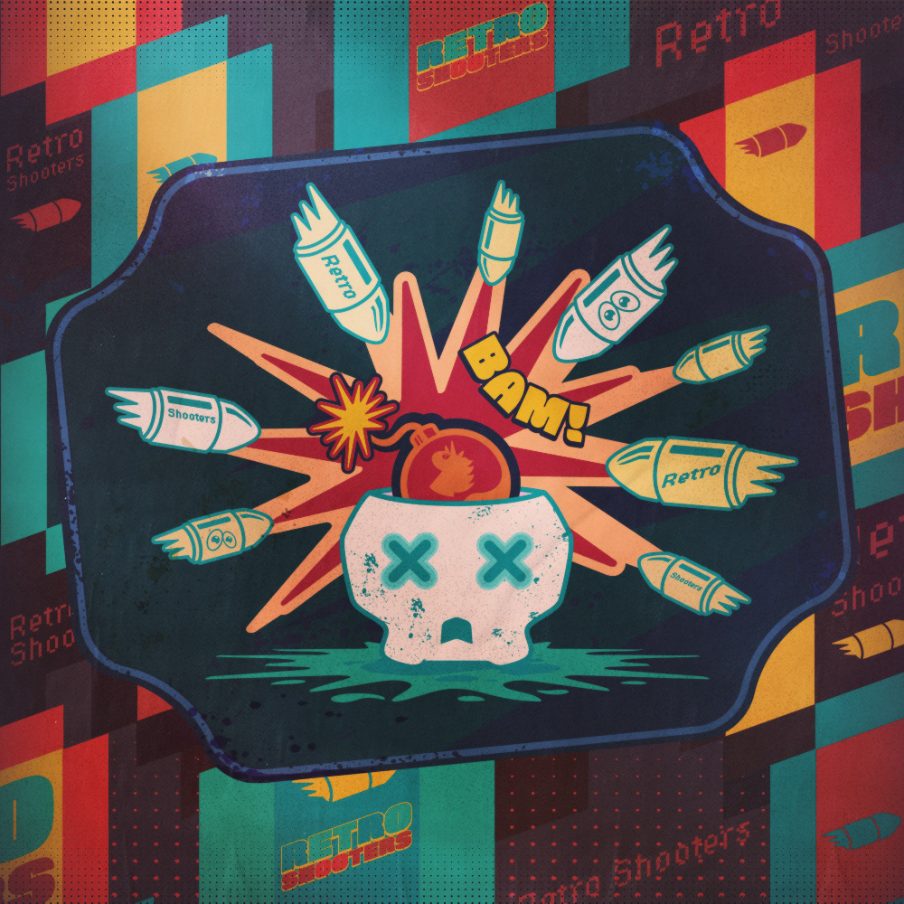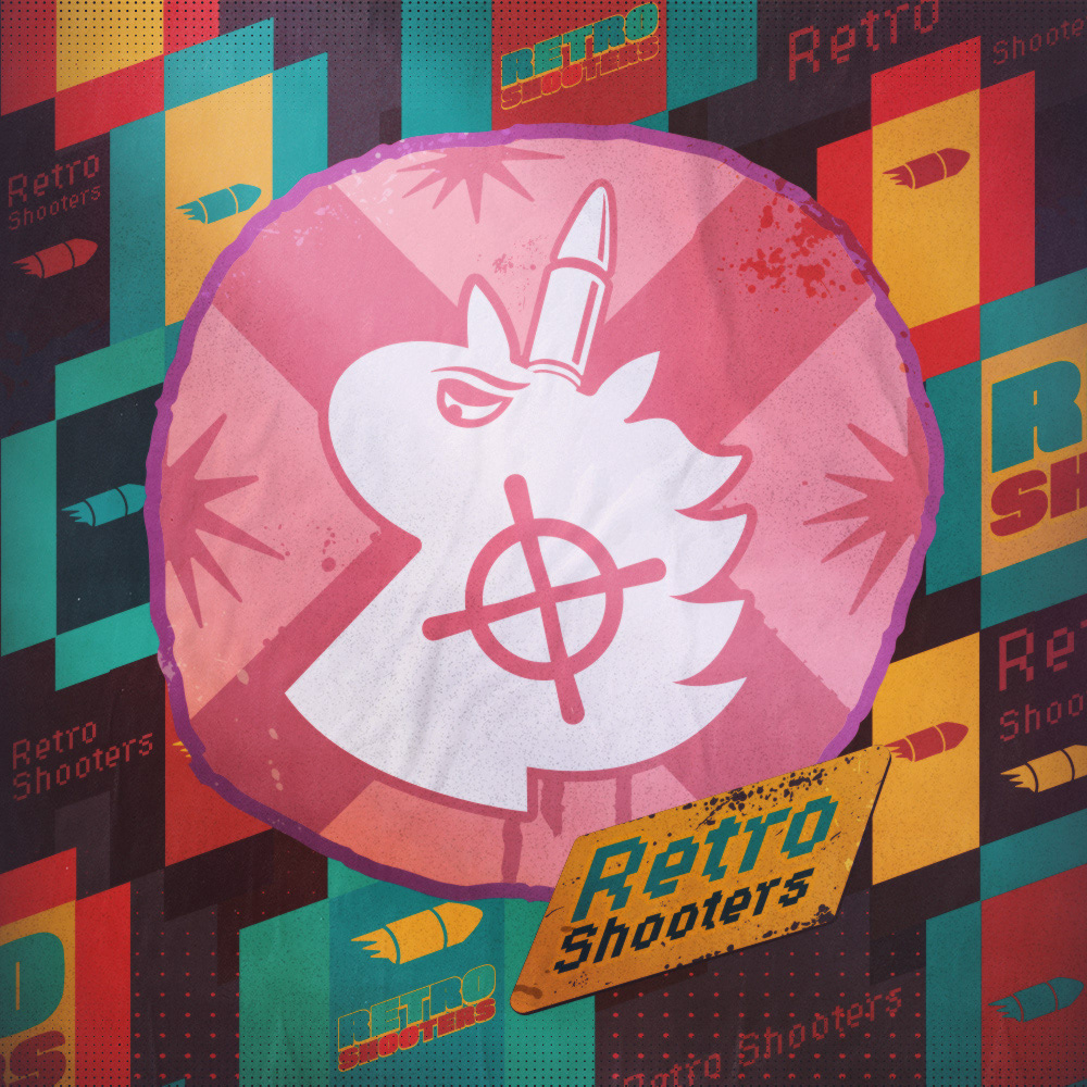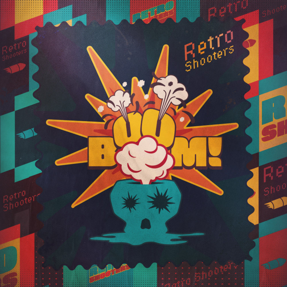 Key visual and illustrations for the GOG sale - classic shooter games.